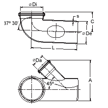 Codo a 87º 30′ c/acometida izquierda